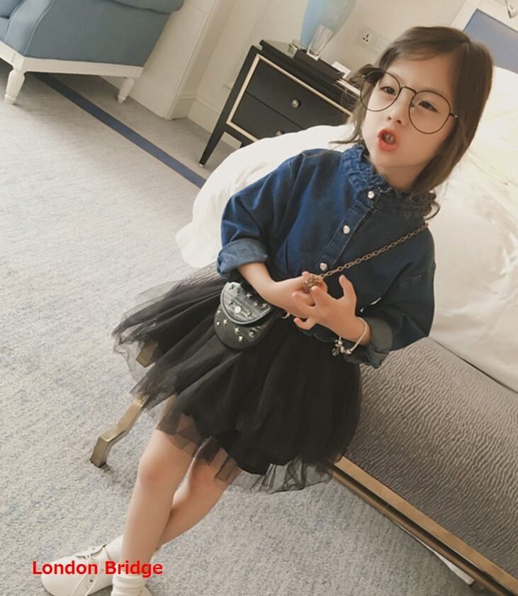 【デニムワンピース キッズ 前開き ボタンシフォンスカート女の子♪】 100 110 120 130ジュニア 子ども キッズ 子供服 キッズ服 韓国子供服 韓国 のご案内です☆