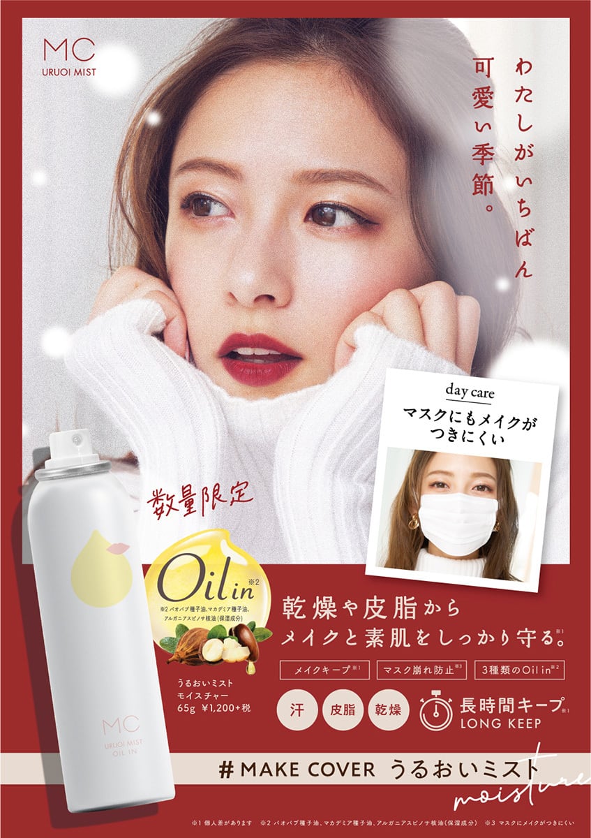 「メイクカバーうるおいミスト」の数量限定<オイルインバージョン>がパッケージを全面リニューアル!!