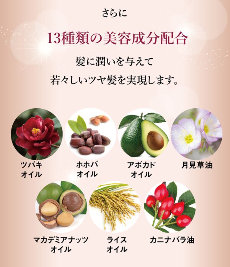 髪に潤いを与え、若々しいツヤ髪を実現します。