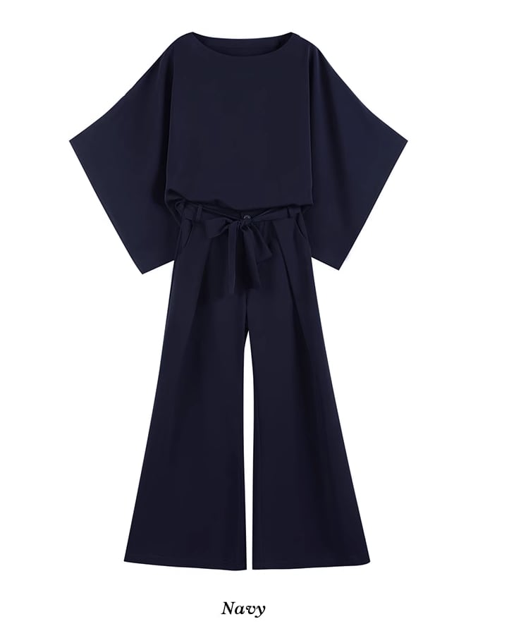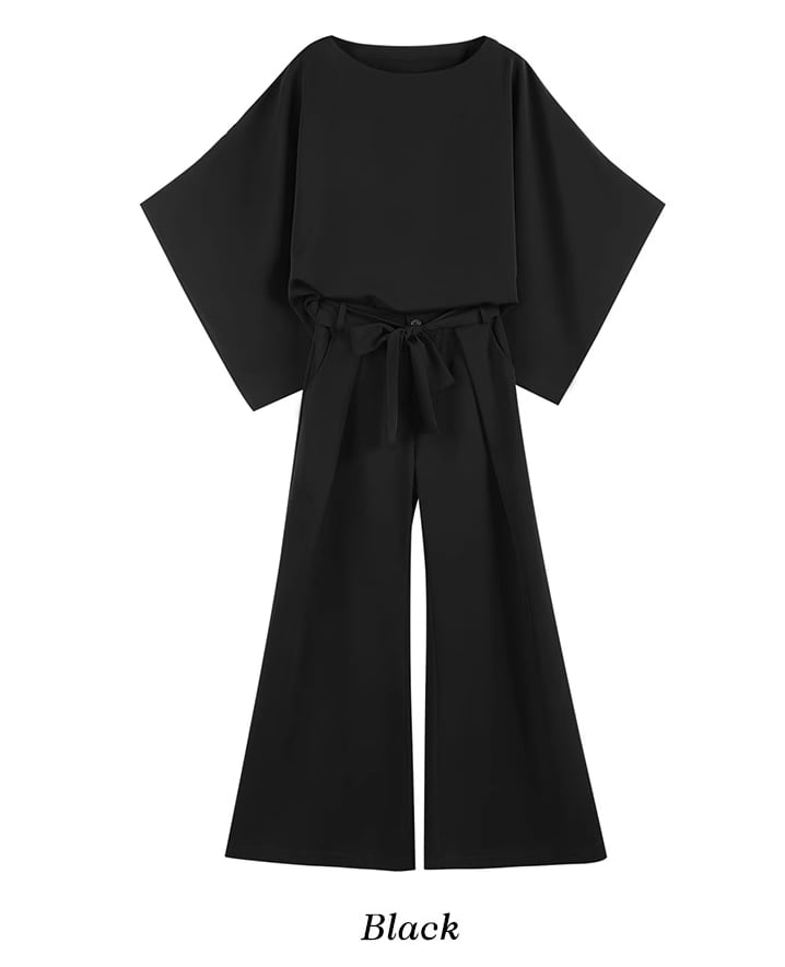 【大人デザインセットアップ☆トップス×ワイドパンツ】 セットアップ レディース ドルマンスリーブ トップス ワイドパンツ 半袖 2点セット オフィスカジュアル 20代 30代 40代 50代 母 ママ 母親 おしゃれ 体型カバー フォーマル 結婚式 普段着 入園入学 卒園卒業 送料無料