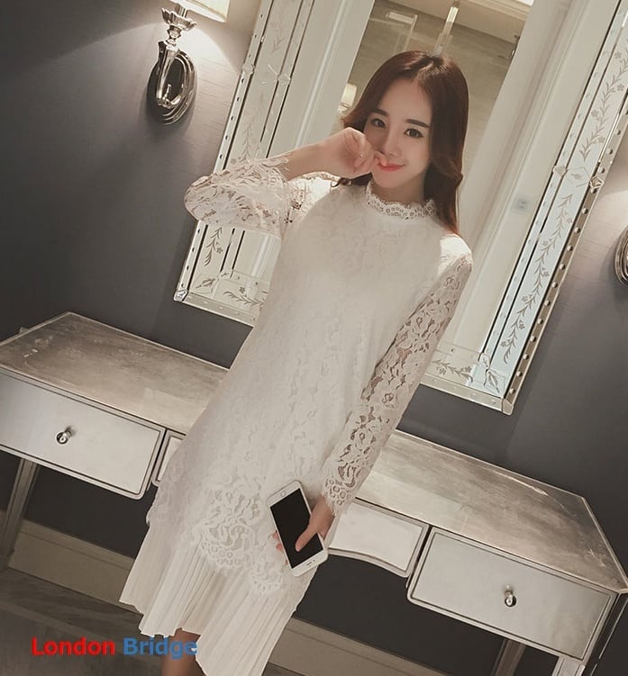 ワンピース/総レース/レースワンピース/ミモレ丈/ロングワンピース/レディース/裏ボア/長袖/透け/プリーツ切り替え/パーティードレス/結婚式/ワンピース/Aライン/2次会/上品/春秋/同窓会/忘年会/冬新作