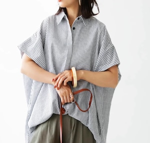 【さわやかストライプ☆レディース ドルマンスリーブ シャツ】トップス シャツ レディース 半袖 ストライプ柄 ドルマンスリーブ ゆったり 体型カバー 個性的 さらさら 春 夏 20代 30代 40代 50代 カジュアル シンプル 送料無料のご案内です☆