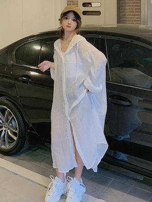 【ゆったりサイズ☆レディース シアー カーディガン】 カーディガン レディース ロング丈 カーデ シアー 大きいサイズ ゆったりサイズ フード付き シャツ ブラウス パーカー ブルゾン サマーカーディガン 春 夏 透け感 長袖 シャツ シアーシャツ 日よけ 日焼け対策 紫外線対策 冷房対策 海 プール 送料無料