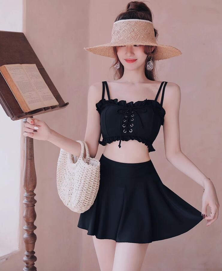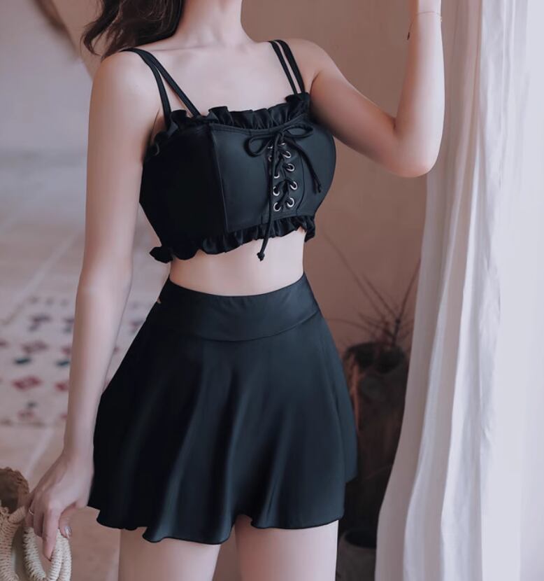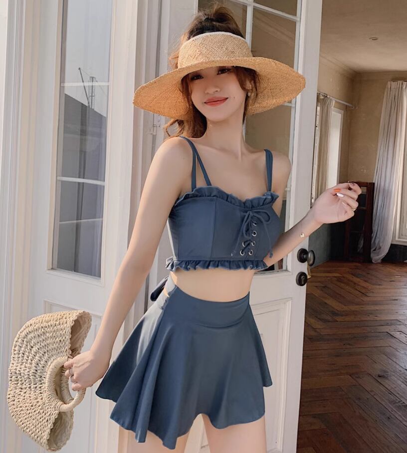 【新作水着☆ビスチェ風 レディース 水着】 水着 スイムウエア レディース レースアップ ビスチェ風 ビキニ 韓国風 人気 タンキニ 夏 海 プール 体型カバー 10代 20代 30代 40代 可愛い 大人可愛い 旅行 リゾート フリル スカート 送料無料