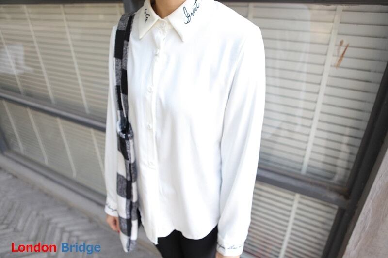 【季節関係無く着れる!ポイントシャツ 英字 リボンマーク】通勤 通学 お揃いコーデ 学生 結婚式 デート 送料無料のご案内です☆