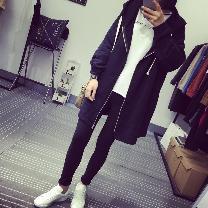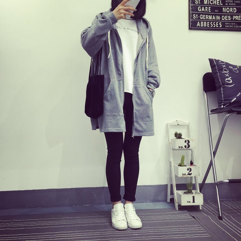 【春秋冬☆韓国風大きめ丈長パーカー】通勤 通学 カジュアル OL レディース 送料無料