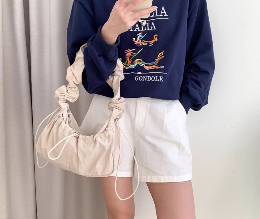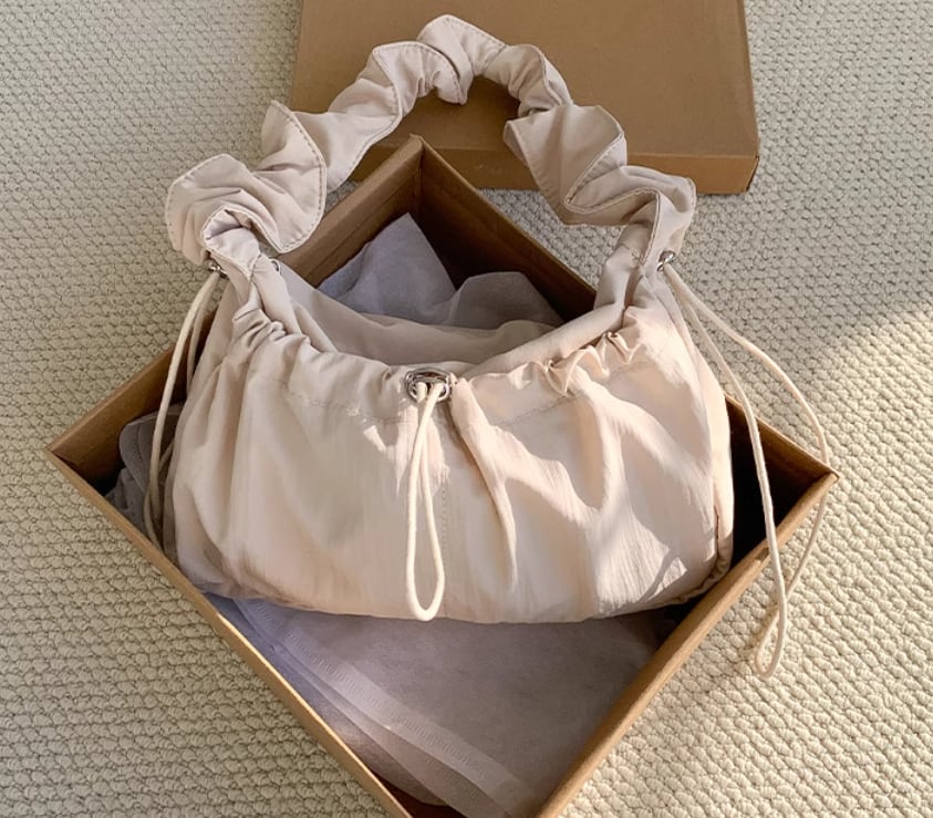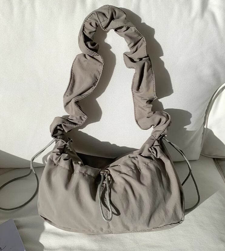紐をクシュっと絞って調整してショルダーバックからハンドバックまで様々なスタイルに♪