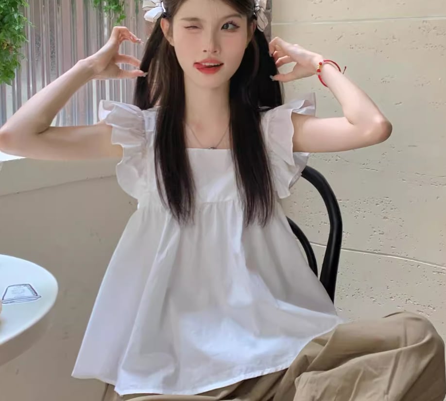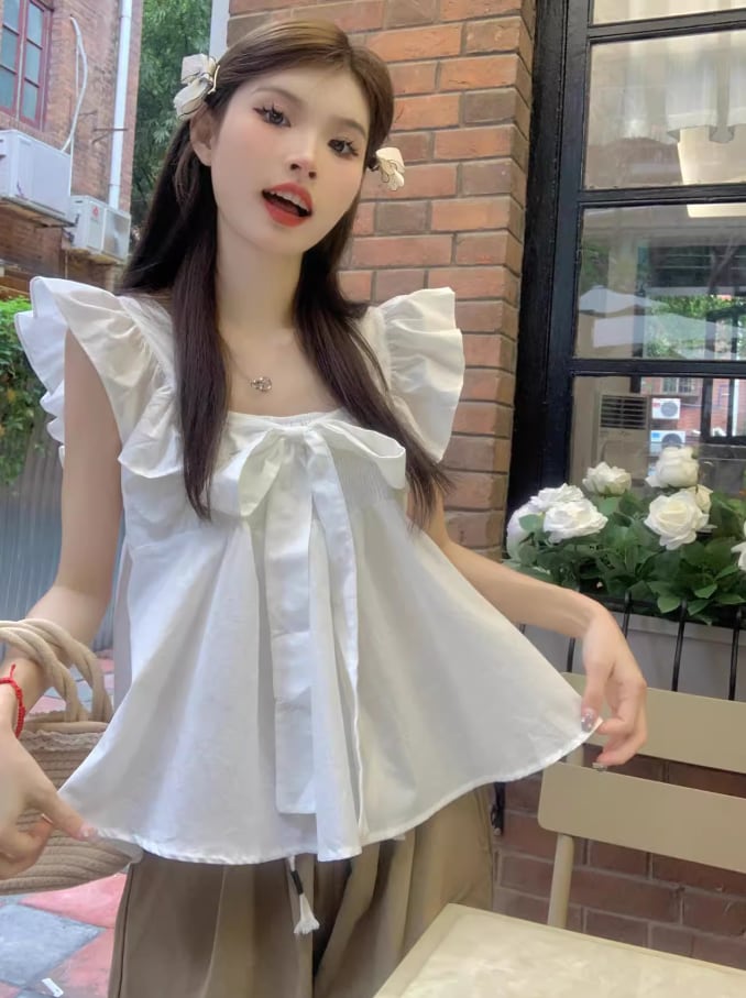 【前後2way☆レディース シンプル トップス】 トップス レディース シャツ ブラウス ノースリーブ 肩フリル リボンタイ ホワイト 春 夏 秋 チュニック 可愛い 大人可愛い きれいめ カジュアル 韓国ファッション スクエアネック 10代 20代 30代 40代 送料無料