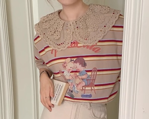 レトロな柄とレースのビックカラーが魅力のTシャツ☆