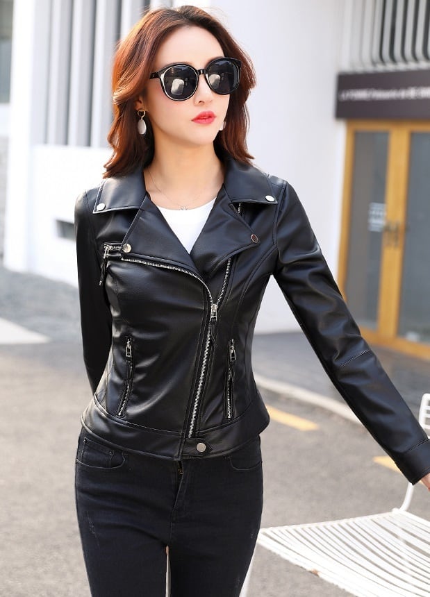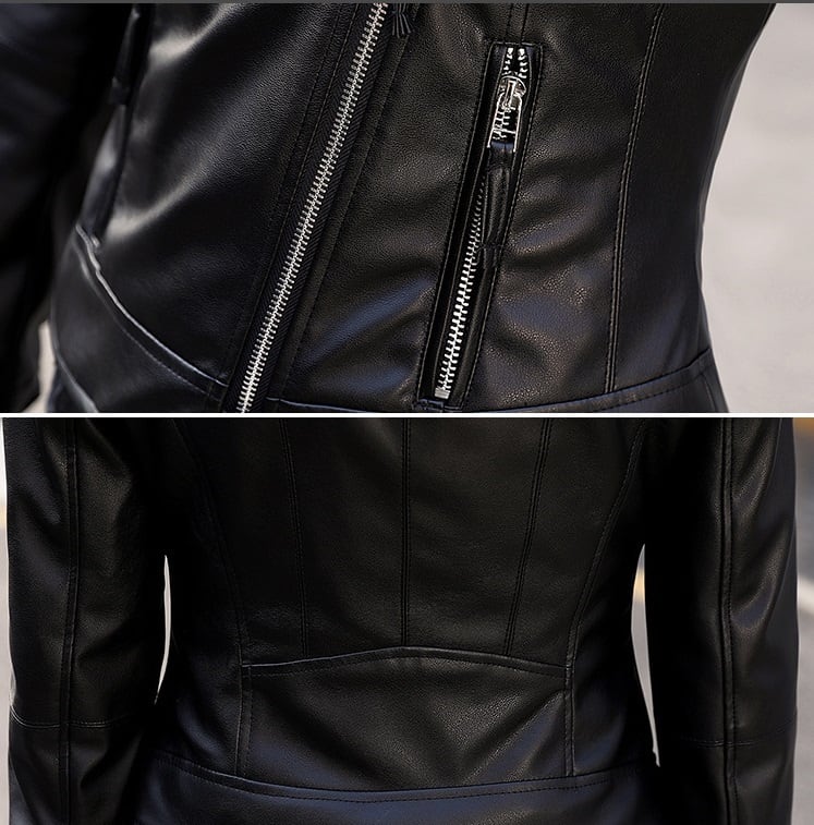 【フェイクレザージャケット】ジャケット アウター レザージャケット 革ジャン 春 秋 冬 ショート丈 羽織り スリム ライダース ポケット付き 黒色 ボーイズライク タイト レザー 送料無料