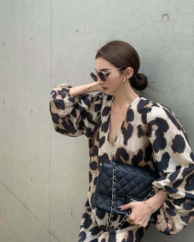 【レオパード柄☆Vネック 着心地抜群 ワンピース】 ワンピース レディース レオパード柄 ヒョウ柄 オーバーサイズ Vネック バルーンスリーブ ボリューム袖 韓国ファッション ゆったり 20代 30代 40代 おしゃれ 春 秋 冬 送料無料のご案内です☆
